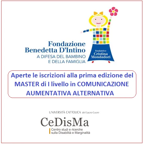 Il CeDisMa – Centro studi e ricerche sulla disabilità e marginalità dell’Università Cattolica del Sacro Cuore, promuove in collaborazione con la Fondazione Centro Benedetta D’Intino (prima realtà in Italia a dedicarsi allo sviluppo ed alla promozione della CAA) la prima edizione del Master di I livello in Comunicazione Aumentativa Alternativa.