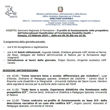 Il prof. Luigi d’Alonzo venerdì 15.02.2019 dalle ore 10.00 terrà una relazione dal titolo “Come lavorare bene a scuola. Differenziare per includere” nell’ambito del seminario Regionale di Formazione “Il profilo di funzionamento nella prospettiva dell’International Classification of Functioning Disability Health“.